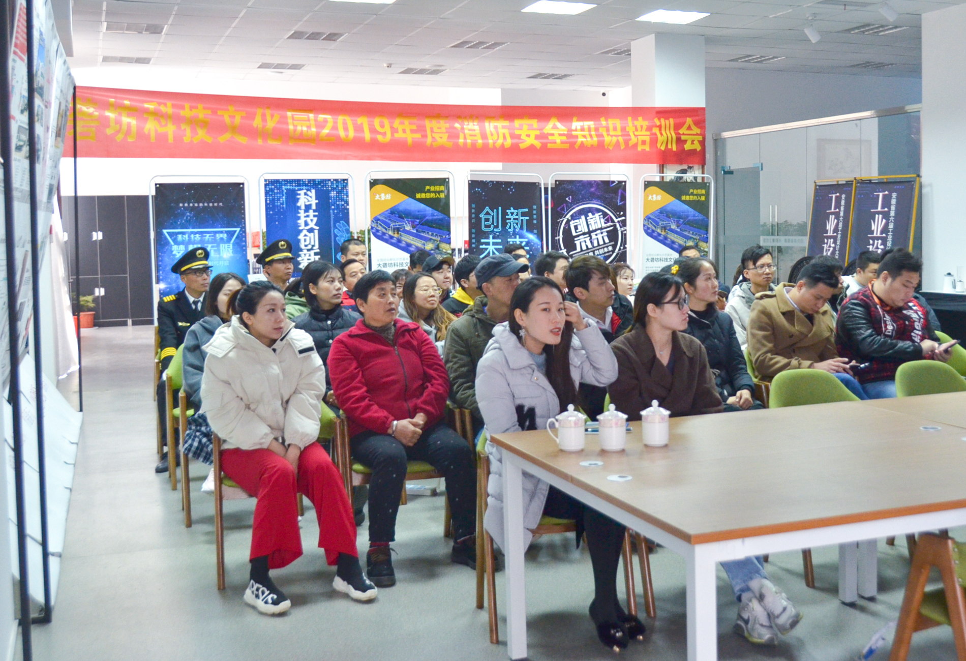 為加強園區企業人員的消防安全意識,進一步普及消防安全基本常識,學習掌握各種消防設施的使用方法,提高自防自救能力。大礱坊科技文化園于11月19日上午邀請金馬門消防中隊白教官,在A03棟一樓開展“消防安全培訓及演練”。園區企業負責人、消防安全責任人、企業行政、企業員工等共45人參與活動。
