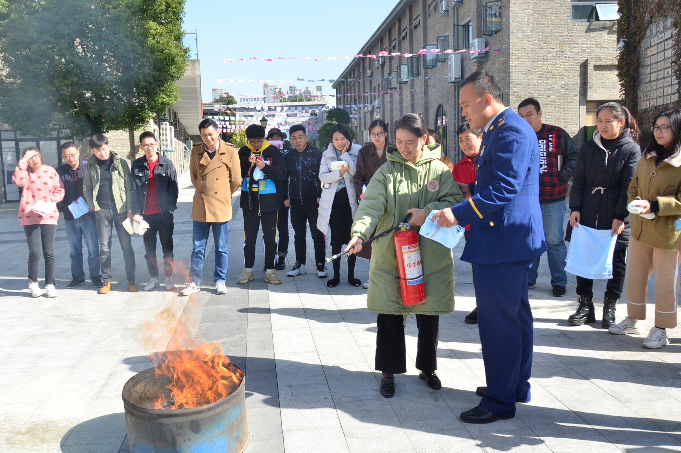 隨后,在室內模擬了火災發生時的逃生演練,使全體人員了解和掌握如何識別危險、如何采取必要的應急措施、如何疏散人群等基本操作,一旦發生事故,懂得應該做什么、能夠做什么、如何去做等。在演練開始時,白教官為員工們講解及示范如何正確使用滅火器,大家在理解了使用方法后,克服內心恐懼后,對油桶火進行撲滅,體驗了滅火過程。