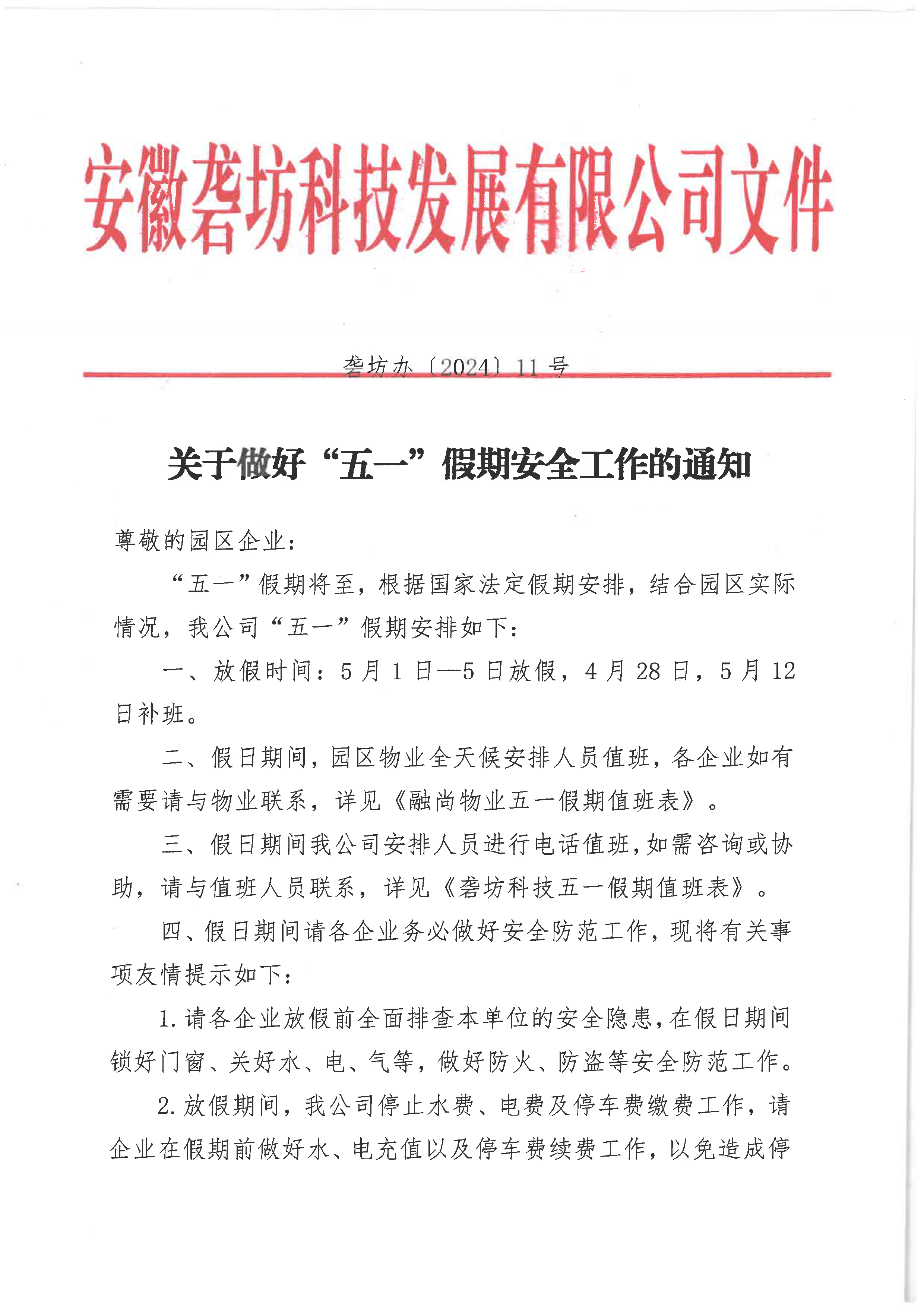 關于做好“五一”假期安全工作的通知